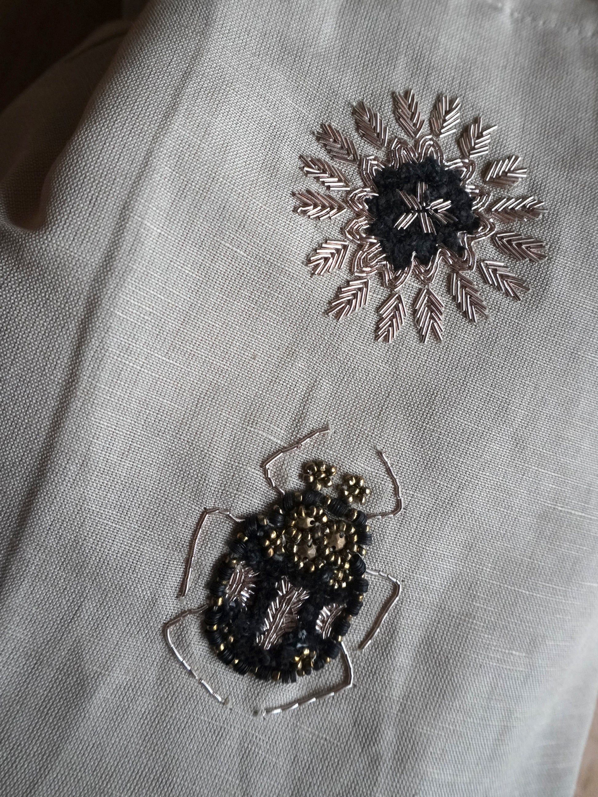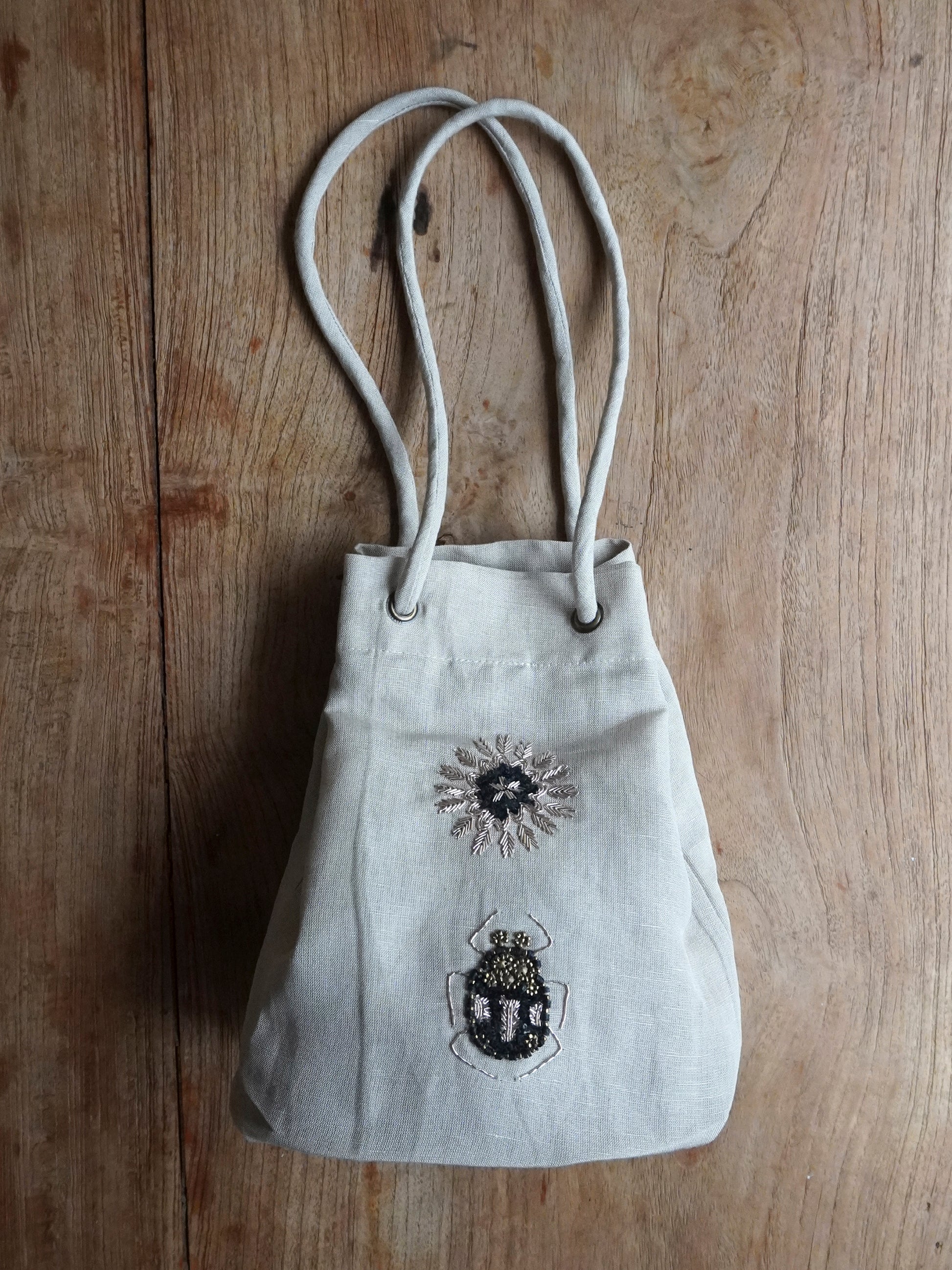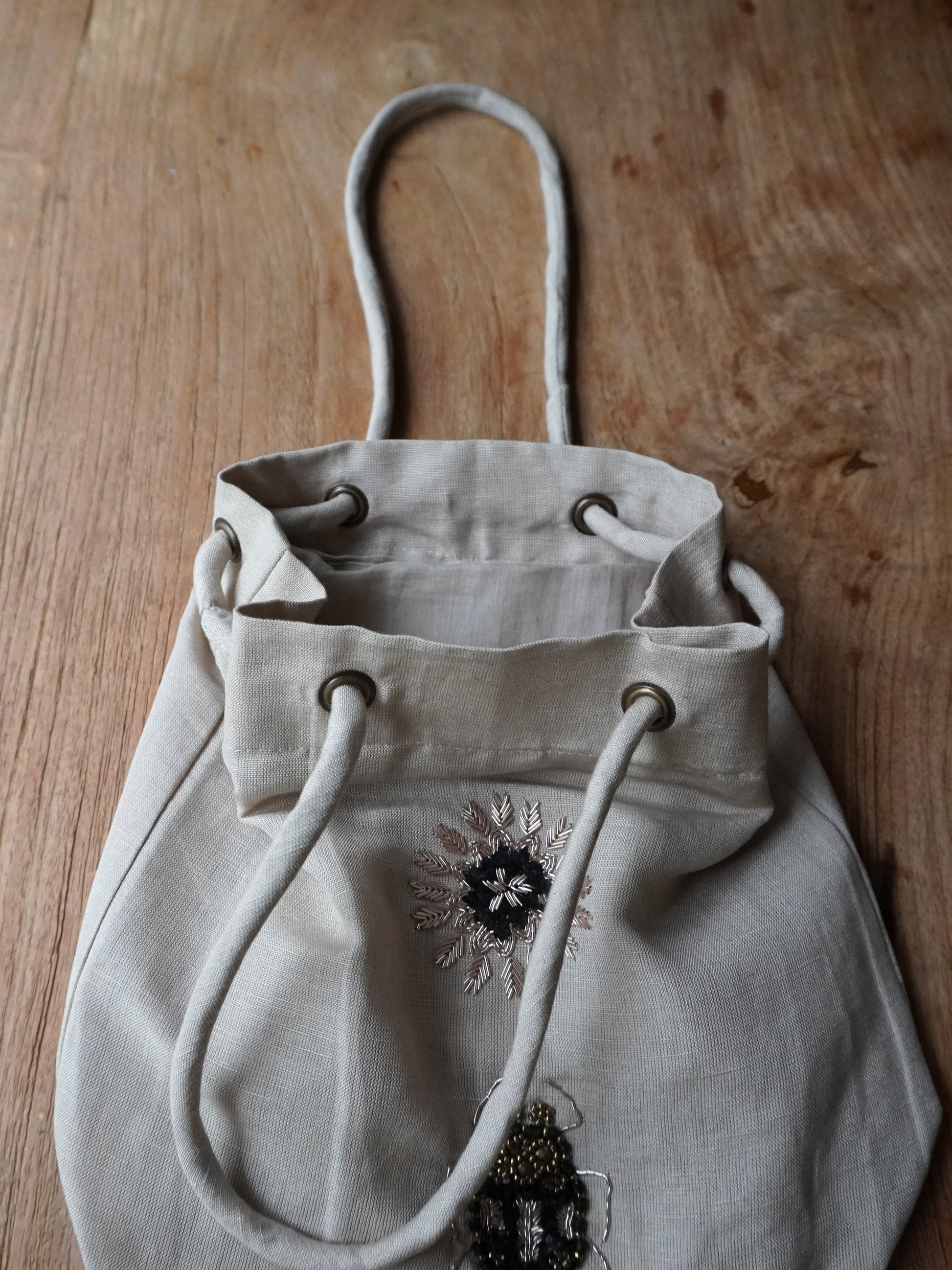 さりげなく輝くビーズ刺繍が目を引く、リネンヴィスコースの2wayバッグ。